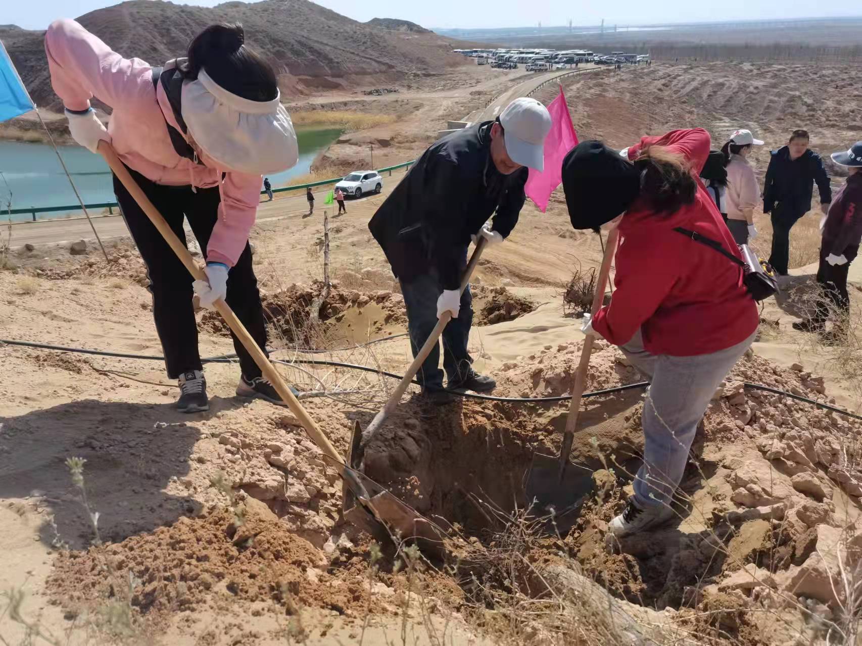 下午13时半,大家集体乘车前往兴庆区沙漠休闲运动公园。在植树现场,大家分工明确、密切配合,有的铲土、有的扶苗、有的填土……处处可见忙碌的劳动画面。大家精神抖擞、干劲十足,充分发扬团结互助、吃苦耐劳的精神,充分展示档案方志人的良好形象。经过一下午紧张劳动,几百株沙枣及沙棘树苗扎根沃土、迎风挺立,为黄河岸边增添勃勃生机。