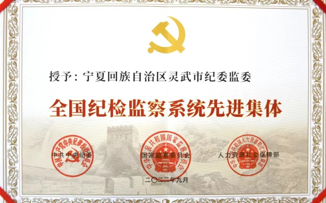 2022年以来,灵武市纪委监委牢记职责使命,服务发展大局,强力推进全面从严治党向纵深发展,为奋力谱写建设先行区和继续建设美丽新宁夏的灵武新篇章提供坚强保障。2022年9月,灵武市纪委监委被评为“全国纪检监察系统先进集体”。